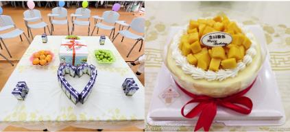 生日會現場,不僅為壽星們準備了美味的生日蛋糕、甘甜可口的水果及飲品,還有精致的生日禮物。