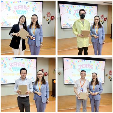 鄒總代表公司為參加生日會的壽星們送上精致的生日禮物。