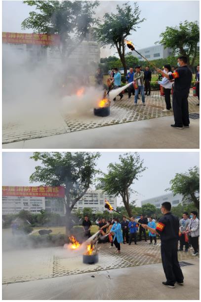 到達疏散集中點后,安全消防專員為大家現(xiàn)場講解了干粉滅火器的使用技巧和注意事項,并親自示范,然后大家輪流進行實踐操作,學(xué)習(xí)并掌握了滅火器的使用方法。