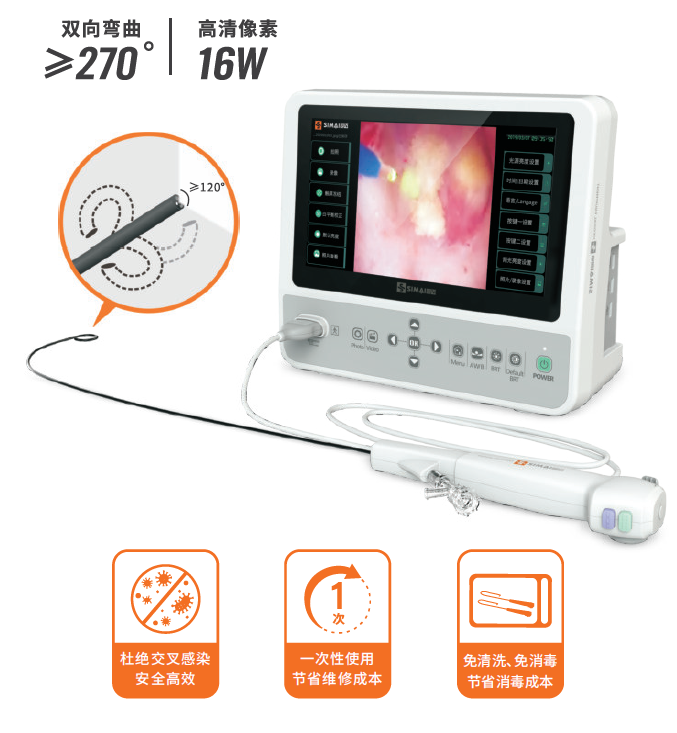 - 插入部分可雙向彎曲,角度≥270°,具有獨(dú)特的二次彎曲功能